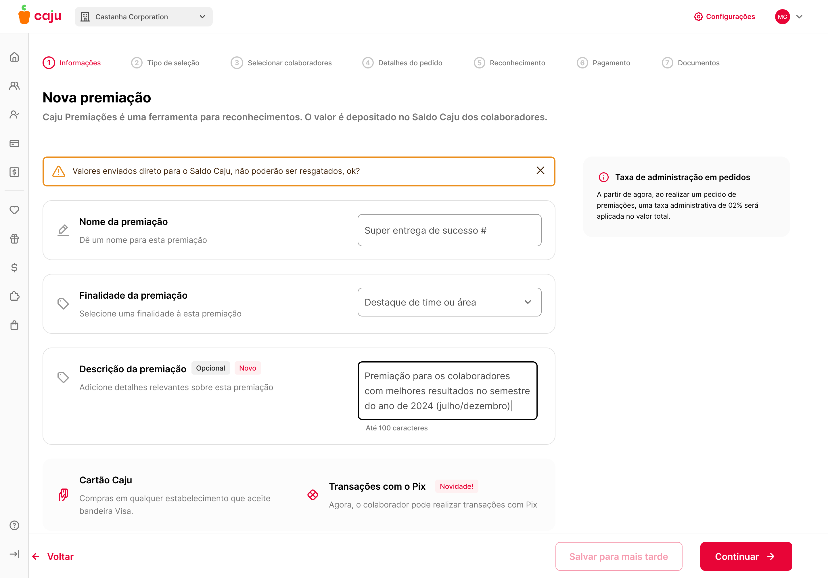 "Acreditamos que, ao facilitar o uso do Caju Premiações como ferramenta de reconhecimento imediato, reduziremos a percepção de desvalorização dos colaboradores, impactando positivamente a retenção (turnover) das empresas clientes."
