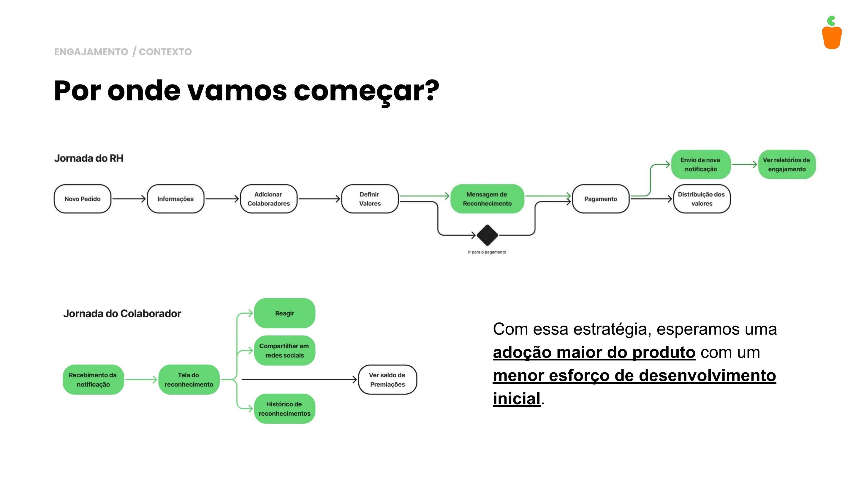 "Durante o discovery, nossa bússola mudou. Identificamos que para reduzir o turnover e aumentar a atratividade das empresas parceiras da Caju, não bastava entregar software de gestão; era preciso criar uma ponte de reconhecimento. Transformamos uma necessidade técnica de HCM em uma oportunidade estratégica de melhorar a Employee Experience (EX)."